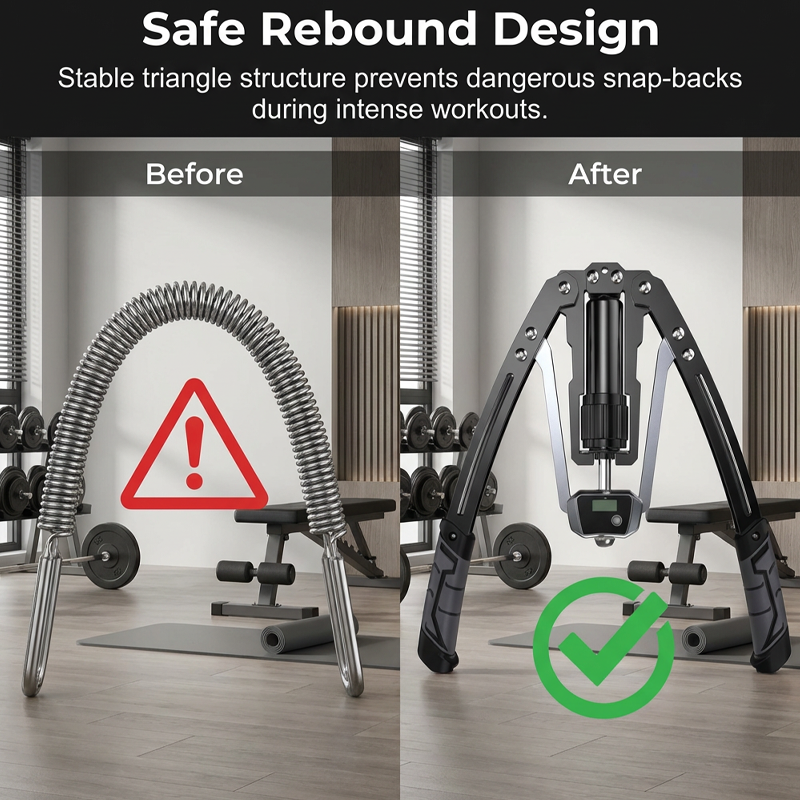 SAFE REBOUND DESIGN - Train with peace of mind. The golden ratio triangle structure ensures a smooth, controlled rebound, eliminating the risk of sudden snap-backs common in traditional spring bars.