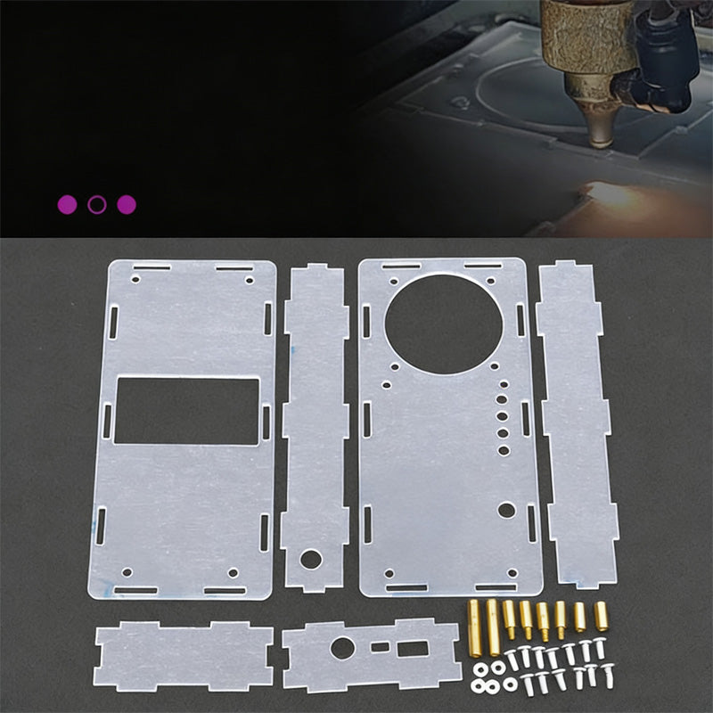 PRECISION-CUT ACRYLIC HOUSING - The kit is enclosed in a durable, transparent acrylic case, precision laser-cut for a perfect fit. It protects the internal components while offering a clear view of the assembled circuitry.
