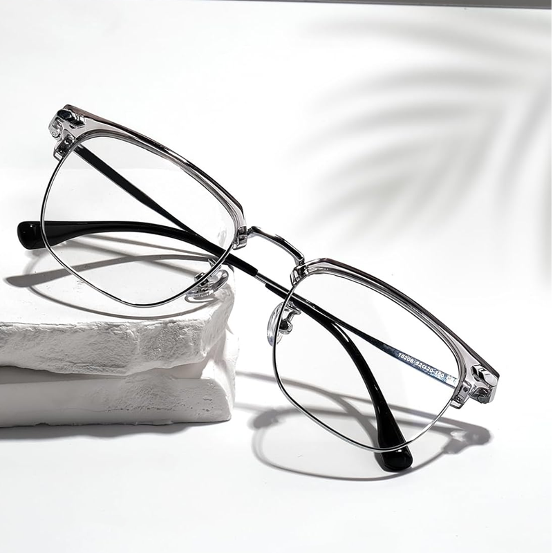STYLISH & VERSATILE DESIGN: Available in multiple colors including clear gray frame, gloss black gold frame, and gloss black silver frame, this half - frame eyewear combines fashion with functionality. Its sleek and modern design makes it suitable for various occasions, from casual outings to business meetings, adding a touch of style to your look.