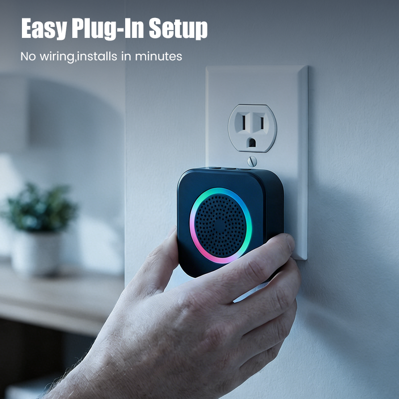 EFFORTLESS WIRE-FREE INSTALLATION - Simply plug the receiver into any standard outlet and mount the transmitter using adhesive. No complex wiring or professional help is needed, getting you set up and running within minutes.