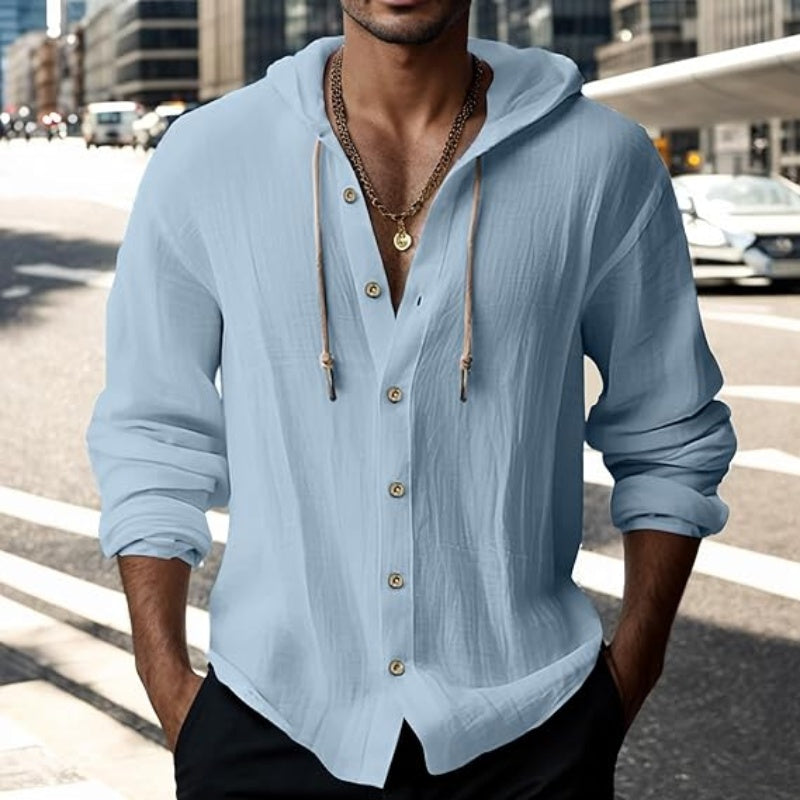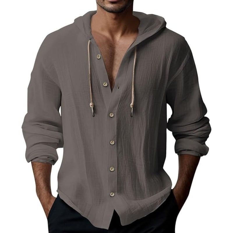Men's Casual Solid Color Long Sleeve Hooded Top