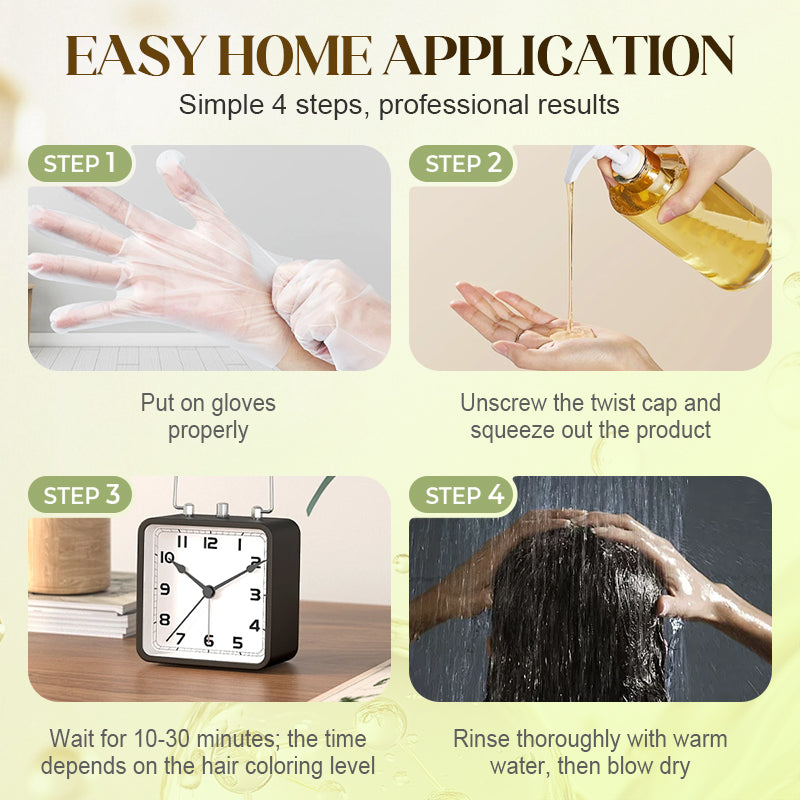 SIMPLE AT-HOME DYEING - Transform your hair color experience with an incredibly straightforward application process. No mixing required; simply apply directly. With just four easy steps, achieve professional-looking results in the comfort of your home, saving time and money while gaining control over your hair care routine.