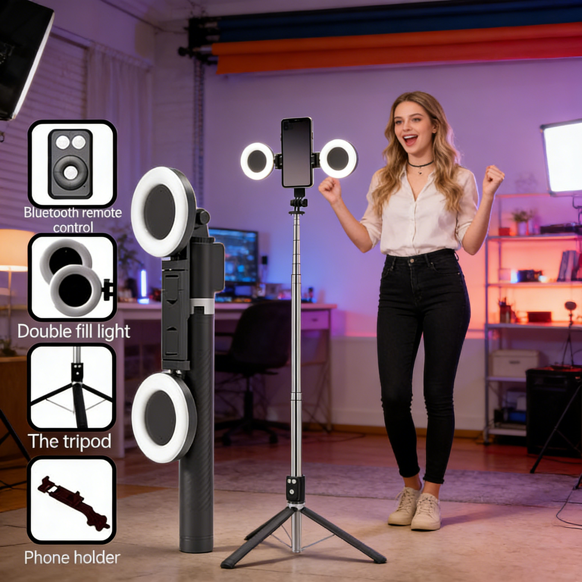 Bluetooth Remote Control: lets you take photos, record videos, like posts on social media, and turn pages remotely. It’s perfect for selfies, TikTok, e-books