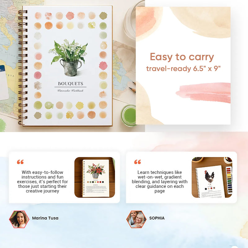 COMPREHENSIVE WATERCOLOR WORKBOOK – This beginner-friendly watercolor workbook is designed to introduce you to the basics of watercolor painting. With easy-to-follow instructions and fun exercises, it’s perfect for those just starting their creative journey.